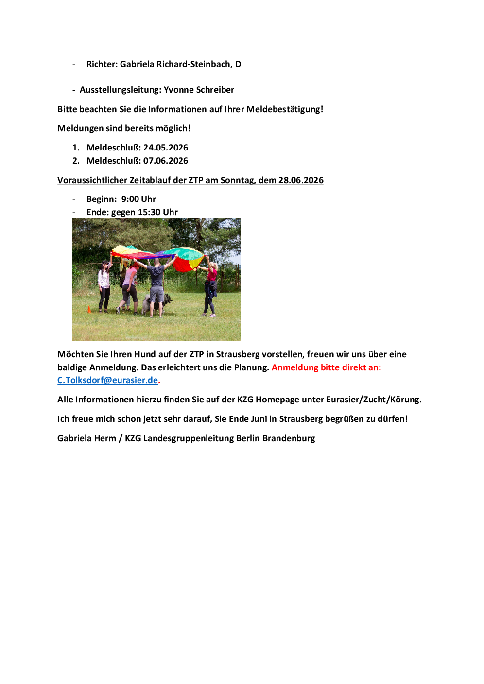 9.00 Uhr: Einlass der Hunde 10.00 Uhr: Beginn des Richtens 16.00 Uhr: Ende der Veranstaltung (Die Zeiten können je nach Meldezahl und individuellen Gegebenheiten abweichen.) Einen Ausstellungskatalog mit detaillierten Zeitplan erhälst Du am Ausstellungstag.