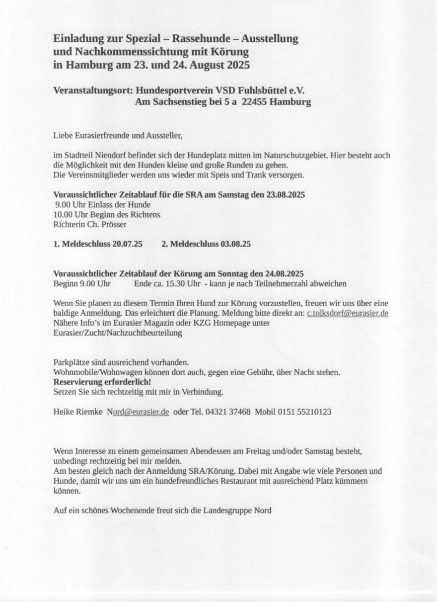 (Spezial Rassehunde-Ausstellung für Eurasier)