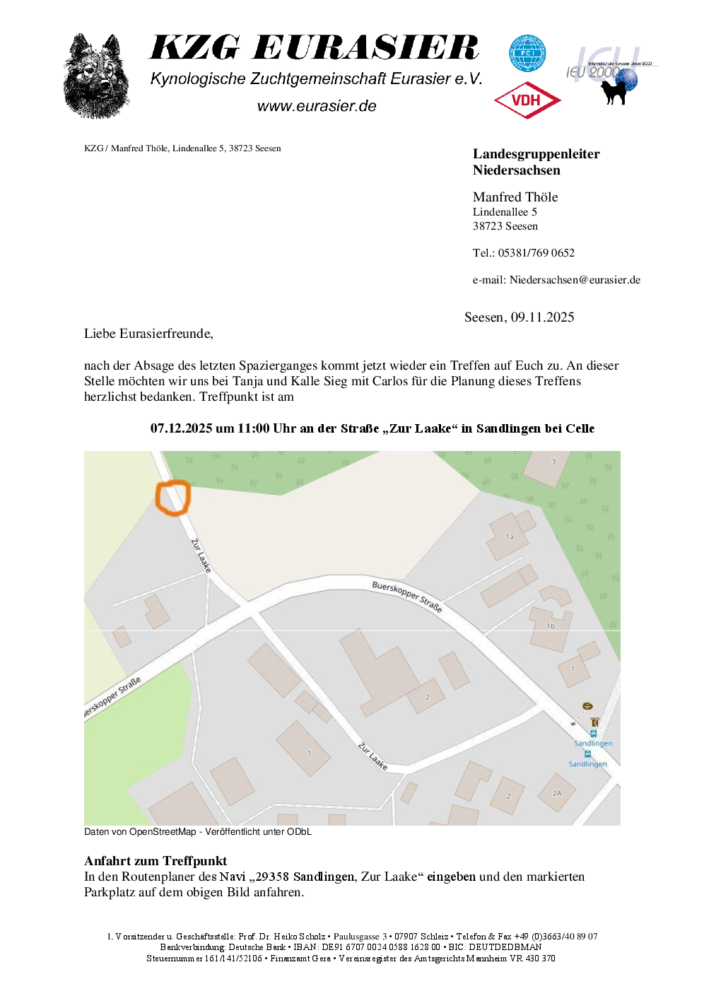 Treffpunkt: Navi: '29358 Sandlingen, Zur Laake' (siehe Einladung)