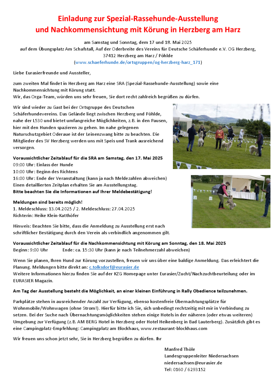 Veranstaltungsort: Verein für Deutsche Schäferhunde - OG Herzberg Übungsplatz Auf der Oderbreite 37412 Herzberg am Harz/Pöhlde » zum Hundeplatz