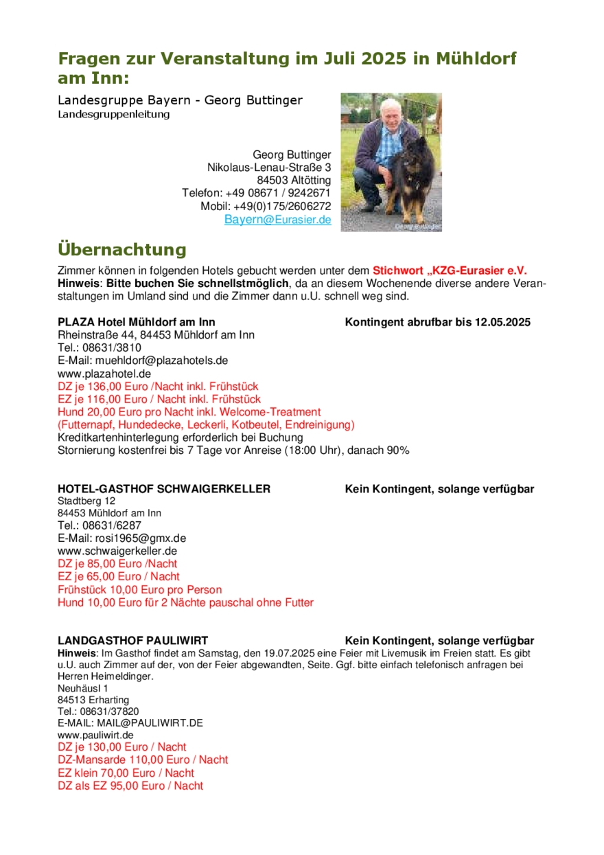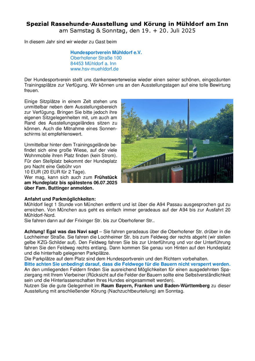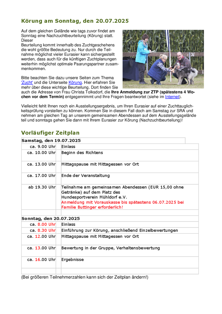 Am Vortag findet auf dem gleichen Gelände eine Spezial-Rassehundeausstellung für Eurasier statt.