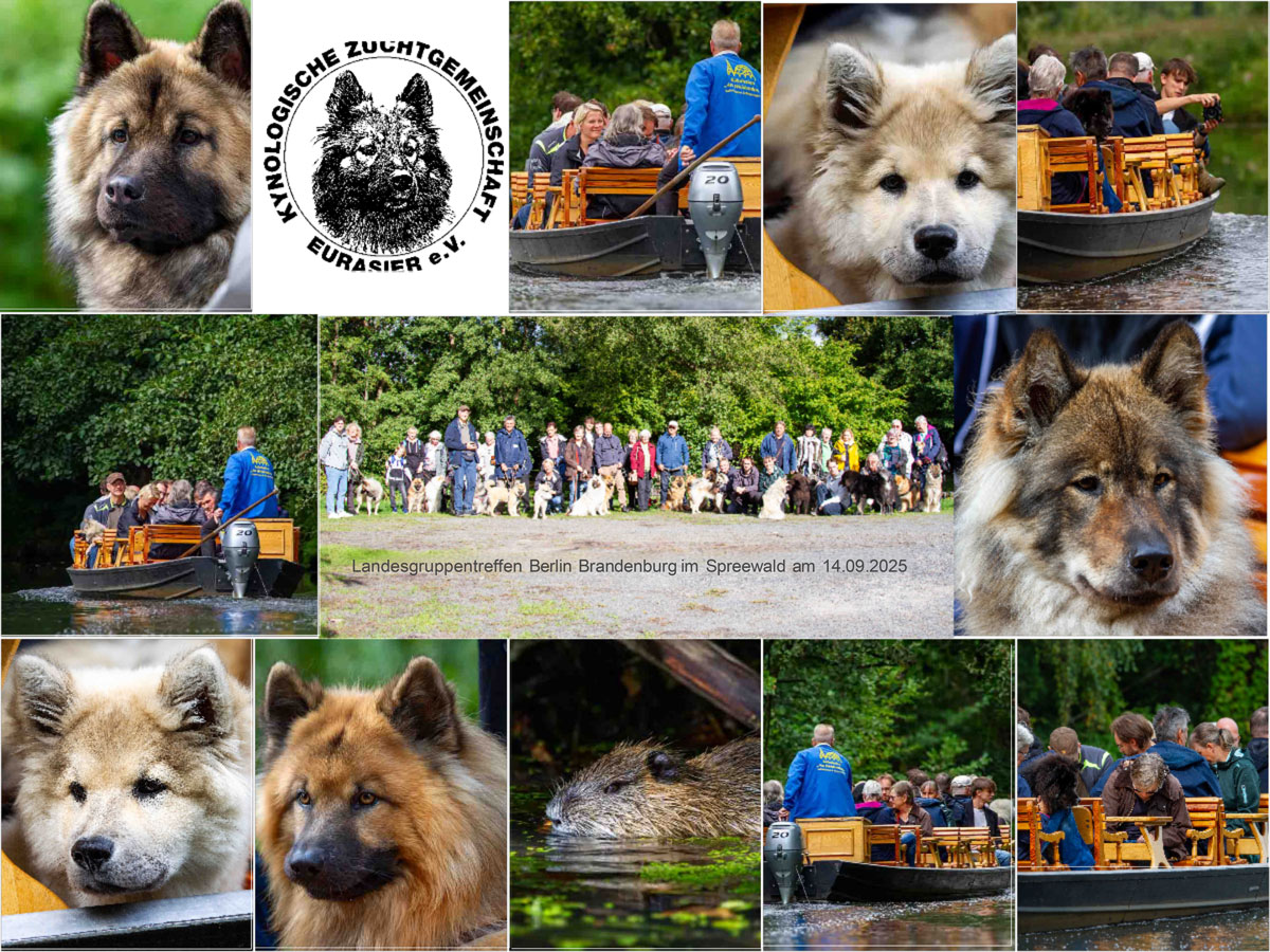 Trotz des unbeständigen Wetters erschienen 38 Menschen, ein Kind und 24 Eurasier, darunter auch 2 Welpen. Das Mittagessen fand diesmal leider nicht im Freien sondern direkt im Brauhaus statt, das typische Spreewaldessen schmeckte jedoch genauso lecker. Um 14:00 Uhr ging es dann in 2 Spreewaldkähnen in die lauschige Natur des Unterspreewaldes und der Wettergott meinte es nun gut mit uns, es blieb trocken, alle genossen die Ruhe und die unberührte Natur des Spreewaldes. Mit leckerem Kaffee, Kuchen und Eis im Anschluss an die Kahnfahrt erneut im Brauhaus ließen wir diesen schönen Tag ausklingen. Auch nächstes Jahr wird es wieder einen Ausflug in den Unterspreewald geben.