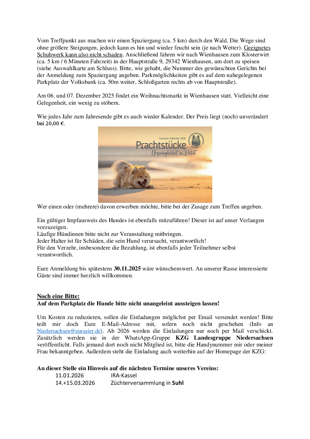 Treffpunkt: Navi: '29358 Sandlingen, Zur Laake' (siehe Einladung)