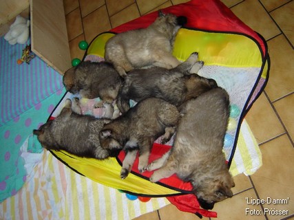 Besonders wichtig ist uns, dass die Welpen in den ersten Lebenswochen schon sehr intensive Kontakte zu Menschen aller Altersgruppen aufnehmen können.