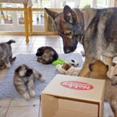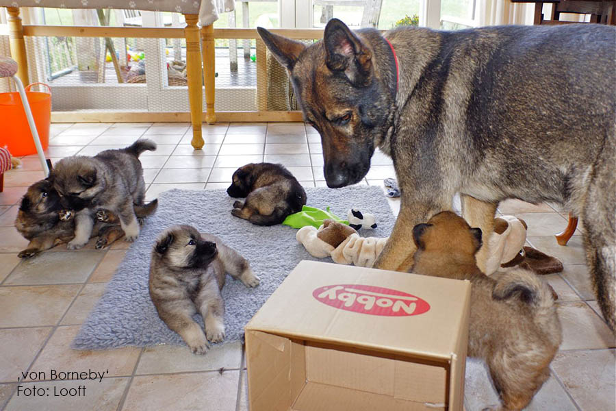 Unsere Welpen erleben Kühe, laute Traktoren, Mähdrescher und Düsenjäger. Die Welpen gewöhnen sich an das häusliche Leben mit allen geräuschvollen Geräten wie Fernseher, Staubsauger, Mülltüten- und Alufolien-Knistern, Feuer im Kamin, Rasenmäher, Kettensäge. Wir sind seit einigen Jahren nicht mehr berufstätig; so können wir uns 24 Stunden am Tag der Aufzucht unserer Welpen widmen.