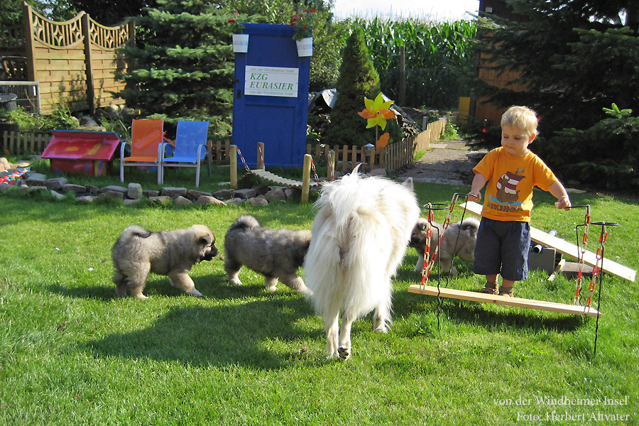 Unser Zuchtstättenname leitet sich von dem schönen ostwestfälischem Weserdorf ab, welches von der Weser und vom Scheusenkanal vollkommen umflossen und somit als Insel gesehen wird. Die Wurfkiste haben wir in unserem Wohnzimmer aufgebaut. Von dort aus ist ein direkter Zugang über die Terrasse zum Garten. Dort erwartet unsere Welpen eine Wippe, eine Schaukel, die Bällekiste und kleine Häuser auf der nachgebauten Insel, welche über eine Wackelbrücke erreichbar sind.